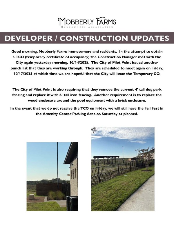 Amenity / Pool Update